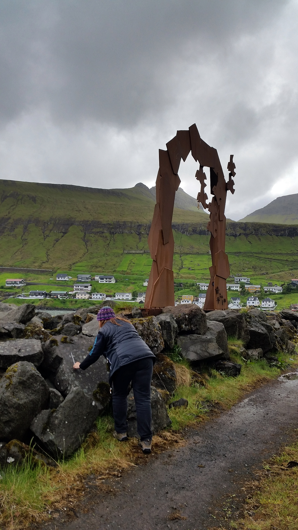 June 23, 2016 More traces in the landscape #TheClippertonProject 1200 × 2133 20160621_172027 Documentation of ‘Trace drawing’ Berkana, Laguz (inverted), Teiwaz in Fuglafjørður, photograph by Martin Drury