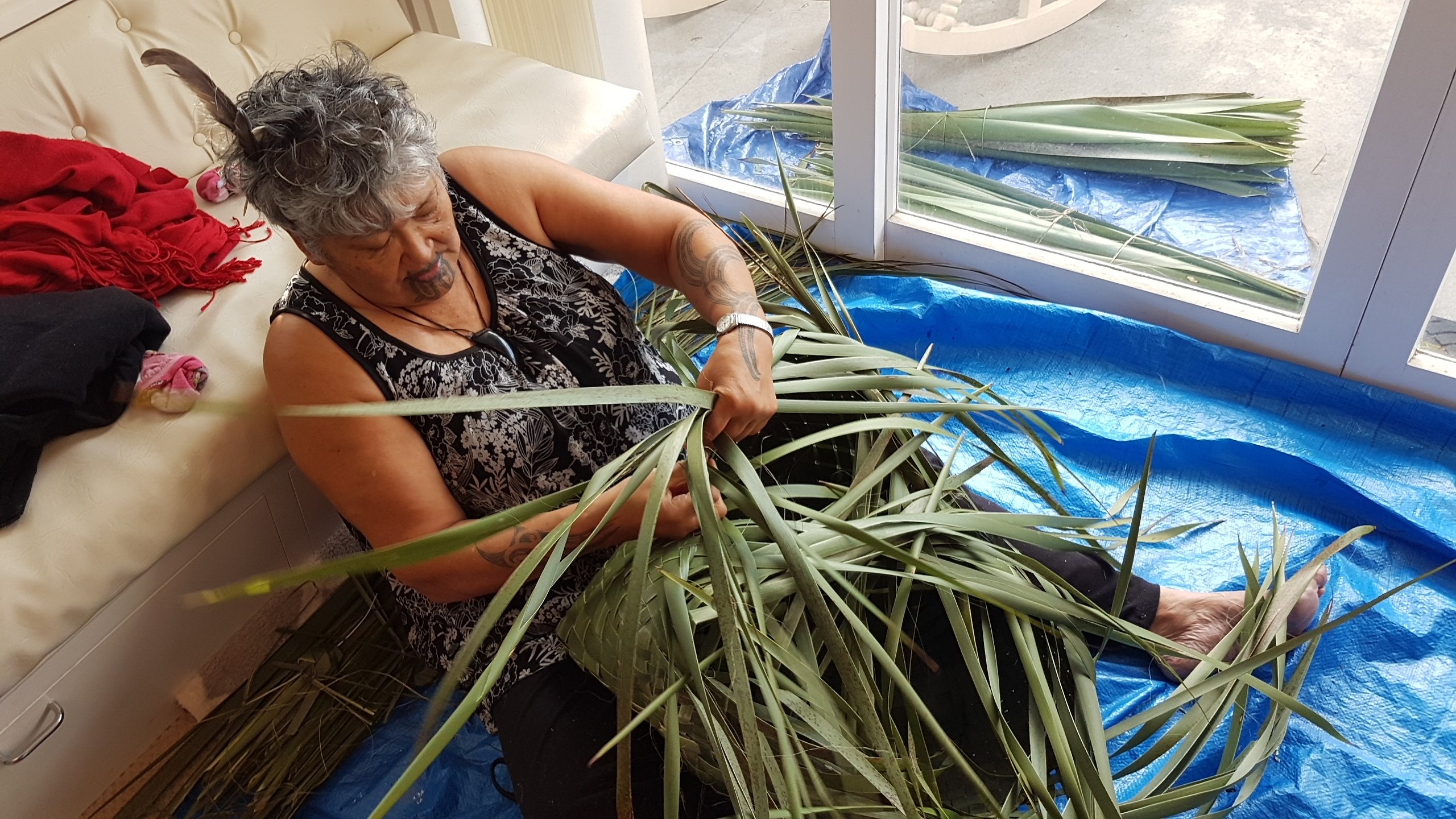 Maata weaving the kete
