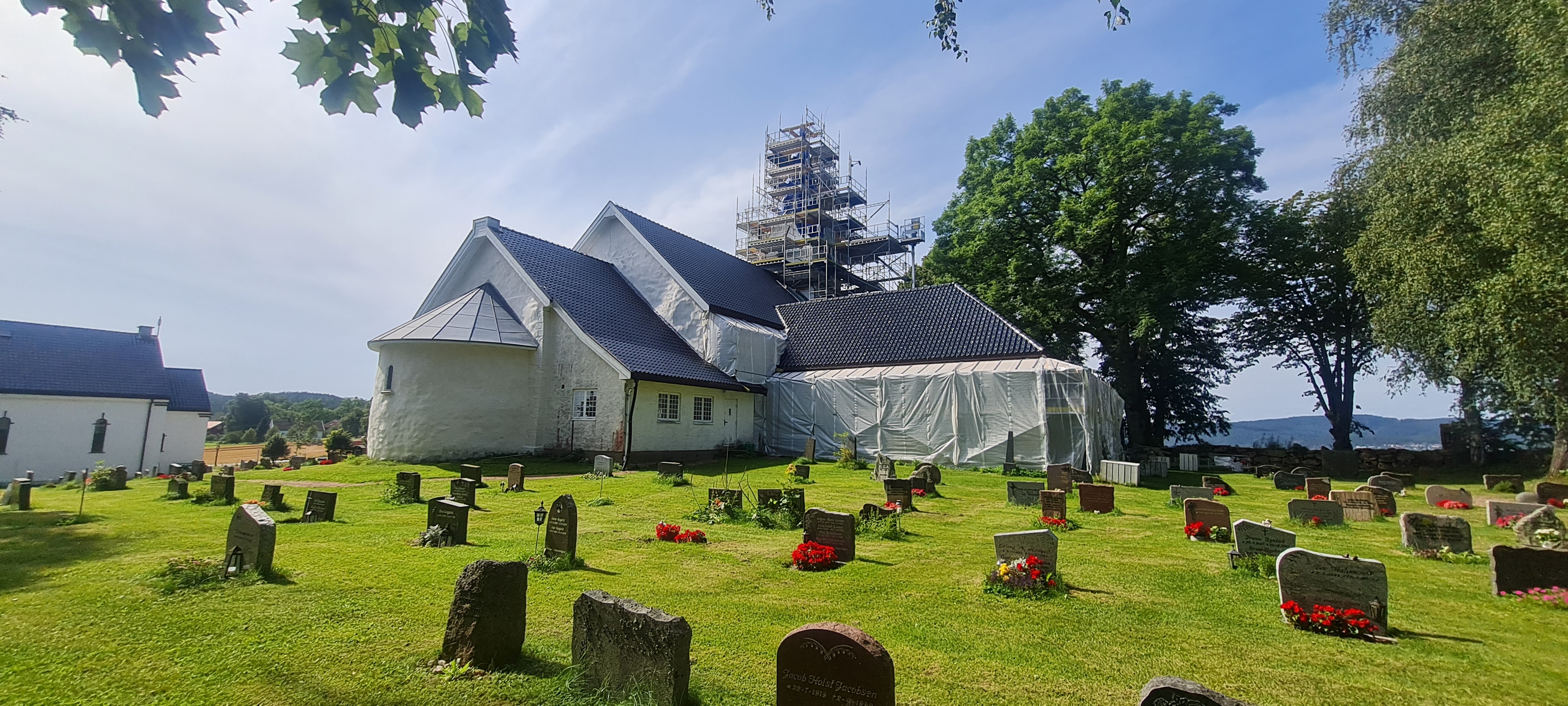 Thursday I decided to continue my gathering of plant materials and jumped on the bus for Klokkarstua – where the Hurum Gamle Kirke (Hurum old church) on my ancestors is located. My ambition was to sit under the Elder tree where I sat and contemplated the past, my ancestors and the tree at a witness to the baptisms, marriages, confirmations and funerals of our family before Anton left to come to Australia. This time I was very surprised to see that the bell tower and the roof of the church are being restored, making it impossible for me to sit with this tree.